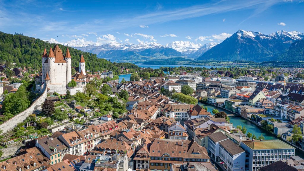 Kağıt üstünde bir şehir olsa da kasabadan hallice olan Thun, kendi adını taşıyan gölün kenarında ve bulmacalarda sıkça karşımıza çıkan Aare Nehri’nin iki tarafında kurulmuş. Kalesi, kilisesi derken yorulunca nehir kenarındaki kafe restoranlarda soluklanabilir, göl kenarındaki Schadau parkında Alpler’e karşı yayılıp piknik yapabilirsiniz.