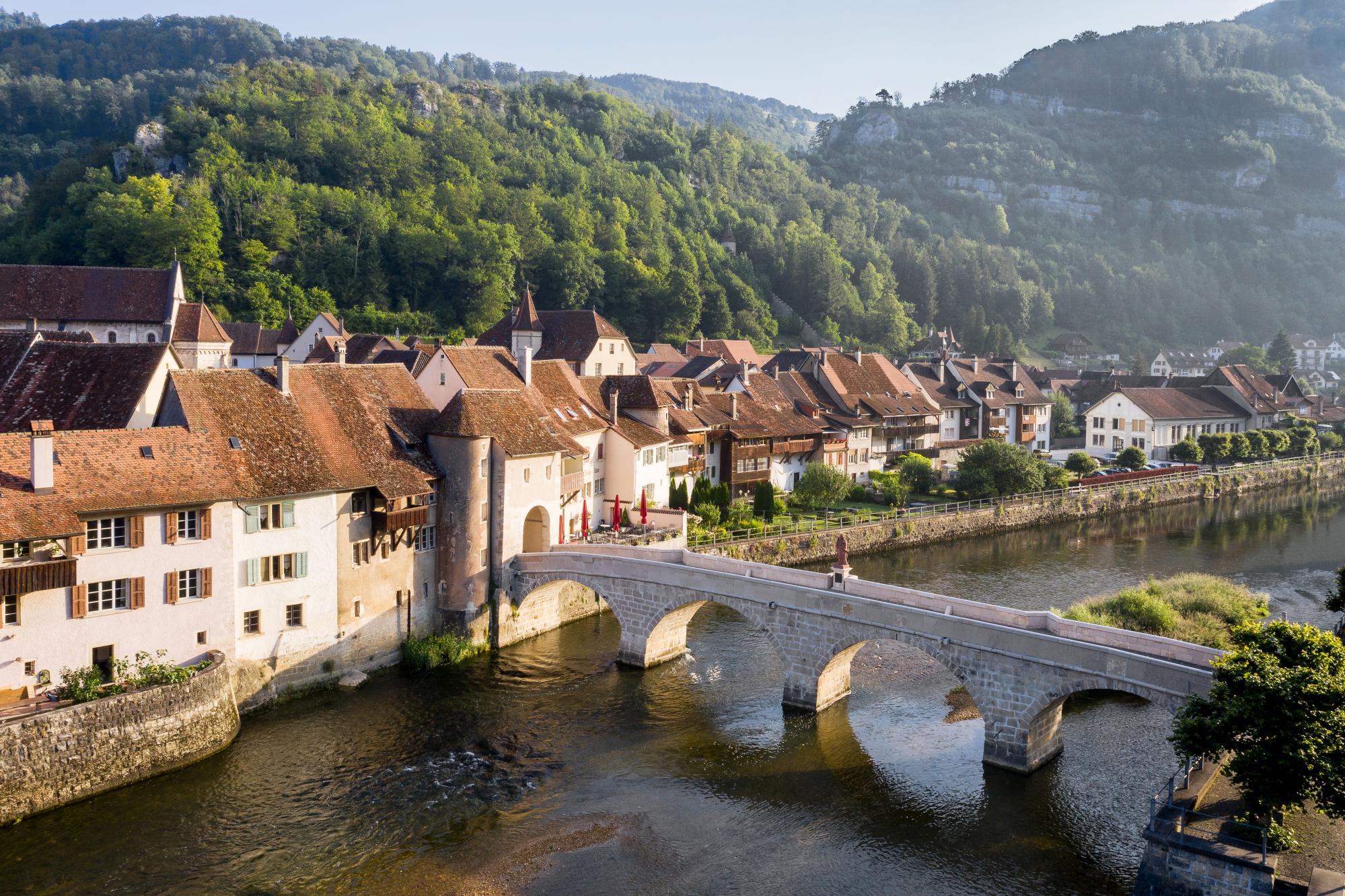 Jura kantonu sınırları içinde, Doubs Nehri’nin kenarında kurulu olan St. Ursanne kasabası, yemyeşil doğası, çok iyi korunmuş yapıları ve küçük tarihi köprüsüyle kartpostal gibi. Kasaba tarih falan bi yere kadar, peki buralarda ne yenir diyenler için de bir ipucu: İsviçre’deki en lezzetli alabalıklarının bu nehirden çıktığı söyleniyor.